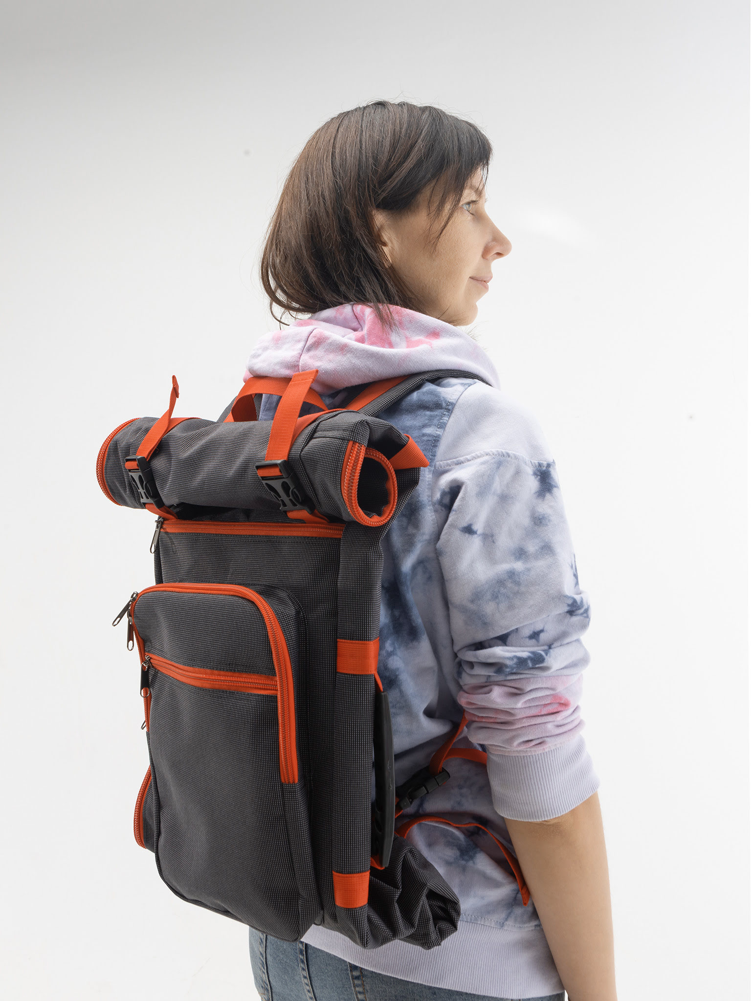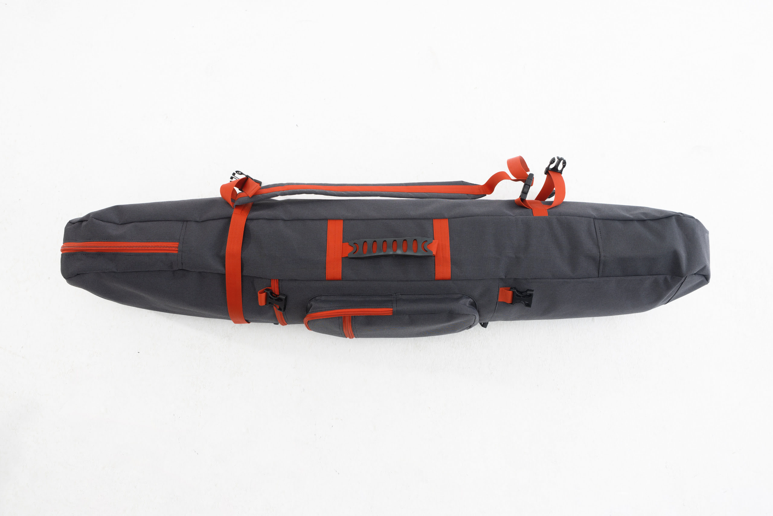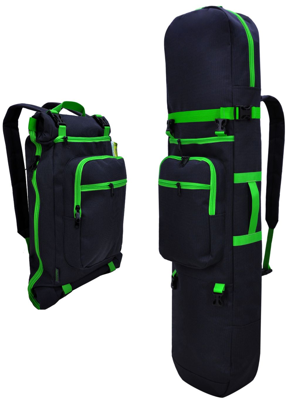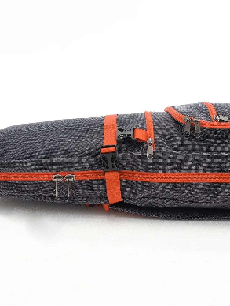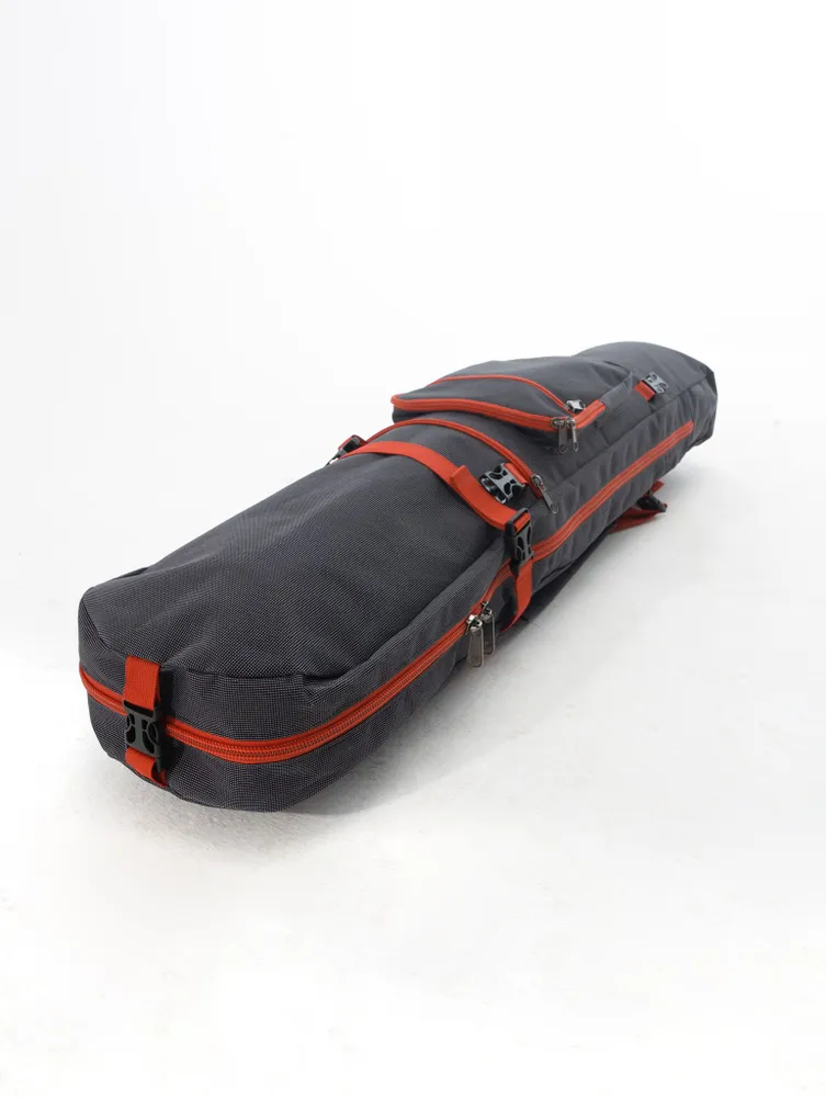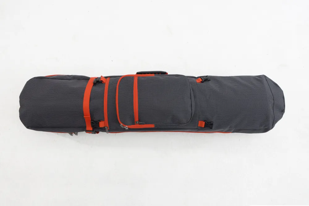 Широко расстёгивается так что можно убирать лонгборд и остальное даже на весу.